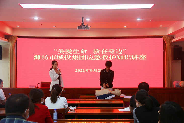 为切实增强广大干部职工应对突发事件和意外伤害的自救、互救意识,提升应急救护知识及急救技能,进一步为全体干部职工及家属生命健康安全保驾护航,紧扣《全市安全生产大培训大教育大宣传活动实施方案》(潍安办字〔2021〕88号)等文件要求,9月28日,体育博彩平台 团委、工会女工委组织开展应急救护知识讲座和互动体验。集团公司部分领导班子成员,各公司、各部室干部职工代表参加。