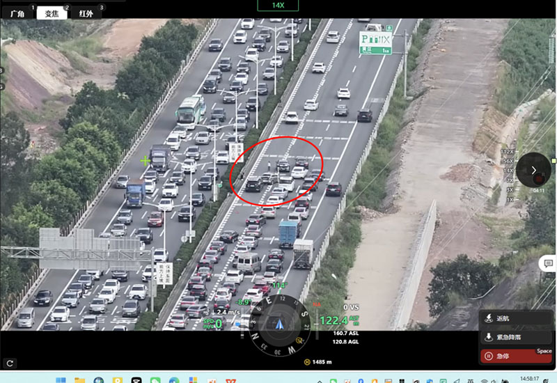 据介绍,假期期间,低空经济公司重点部署了9台“机巢式无人机”和2台单兵操作式无人机,覆盖高速易堵路段约72公里,形成空地一体化监控网络。旨在强化高速公路动态管控能力,及时发现并处置交通拥堵、违法停车、路面隐患等问题。