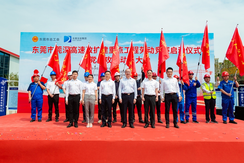 2024年3月28日上午,东莞市莞深高速改扩建重点工程劳动竞赛启动仪式暨党员攻坚动员大会在莞深高速改扩建10标项目部举行。市总工会党组成员、经费审查委员会主任陈伟鹏,市总工会劳动保护部部长王伟雄莅会指导;集团党委委员、副总经理袁国超,集团工联会主席袁翠娟,集团总经济师、东莞控股党委书记、董事长王崇恩以及集团相关部室、莞深高速改扩建各参建单位代表等相关人员出席活动。