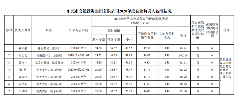 东莞市交通投资集团有限公司2020年度企业负责人薪酬情况_东莞市交通投资集团有限公司,东莞体育博彩平台 ,体育博彩平台