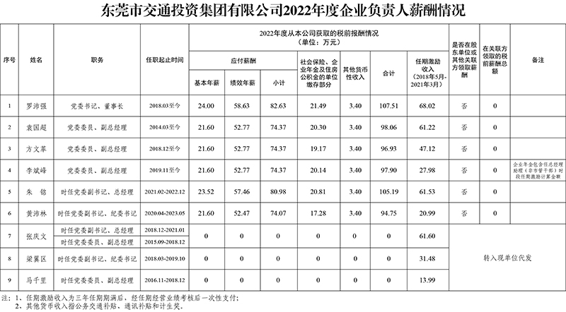 东莞市交通投资集团有限公司2022年度企业负责人薪酬情况_东莞市交通投资集团有限公司,东莞体育博彩平台 ,体育博彩平台