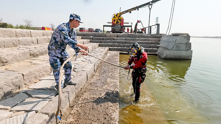 随着开始的指令下达,参演人员各司其职,有序开始,按照调运程序、操作规程进行操作演练。潜水员水下抢险救援是特色救援项目,6名潜水员按照操作要领,凭借过硬的专业技术和强大的心理素质,在能见度极低并伴随暗流涌动的水下,成功完成漏点焊接,顺利完成抢险任务。