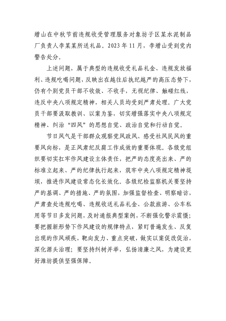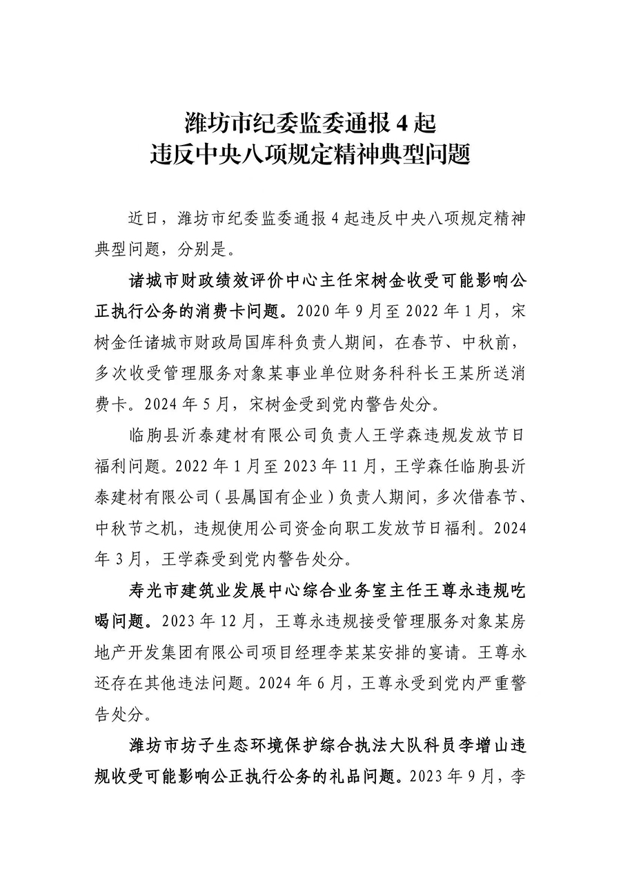 潍坊市纪委监委通报4起违反中央八项规定精神典型问题