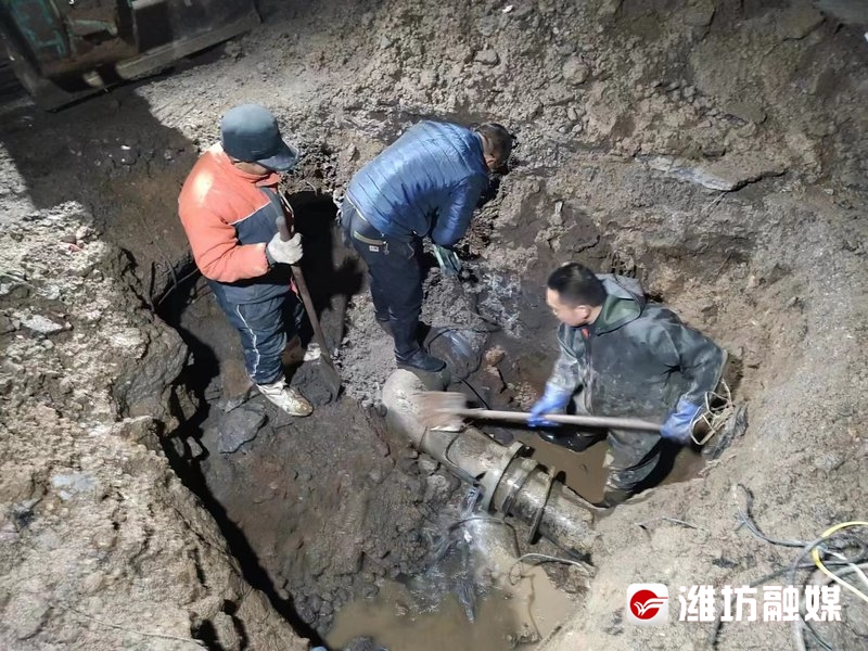 经排查,发生险情的管道为DN250供水主管道,该段管网负责向周边19个村庄用水户和2个用水企业供水,如不及时恢复供应,将影响近2万人在春节期间的正常用水。于是,他们克服气温低对抢修带来的不利影响,积极联系相关部门破拆路面进行抢修,撒放除雪剂并清理路面结冰,消除结冰带来的安全隐患。
