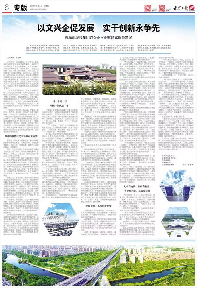 大众日报:以文兴企促发展 实干创新永争先——体育博彩平台 以体育博彩平台赋能高质量发展