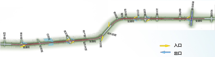 本次宝通街快速路建设规划范围为和平路-志远路,全长9.5km。